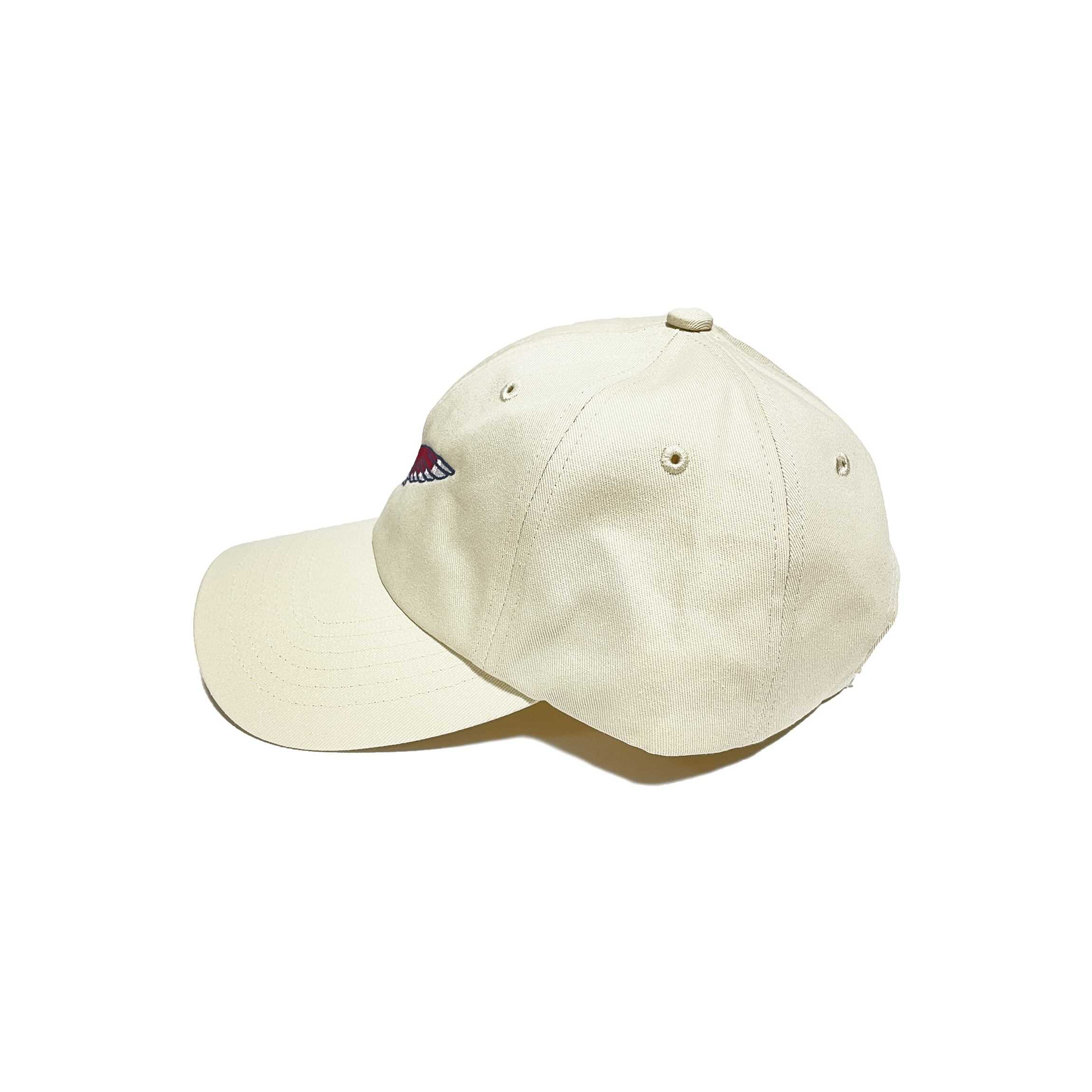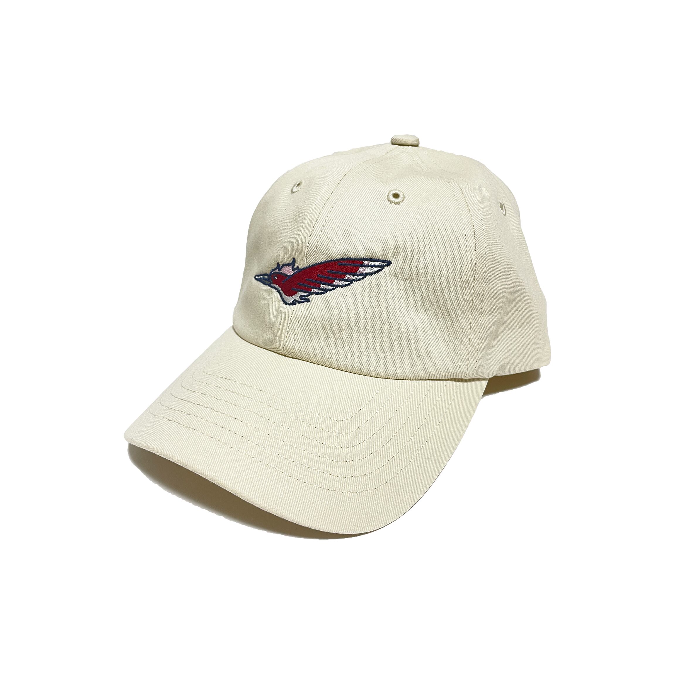 炎を纏った鳥が描かれた刺繍キャップ。