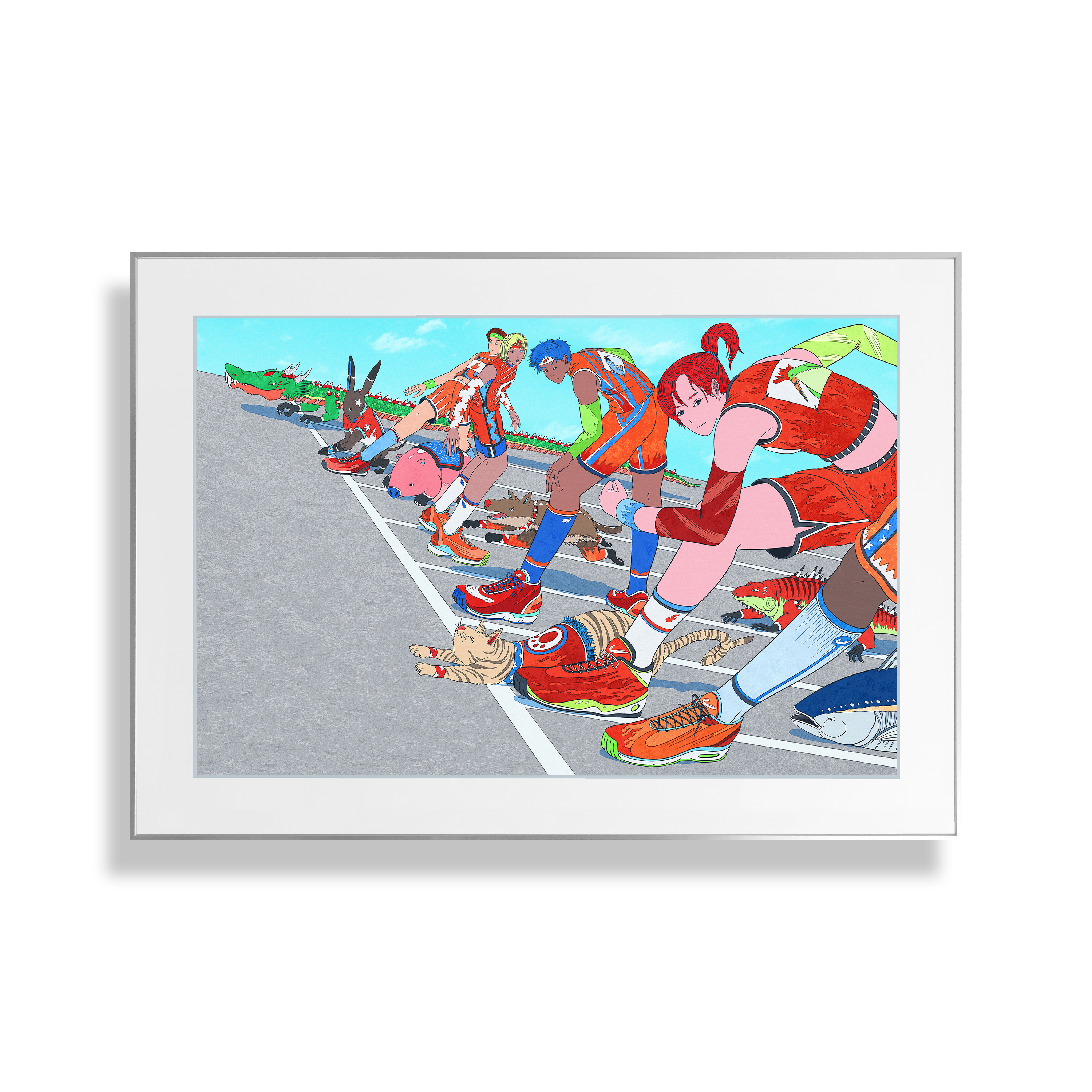 よーいどんの銃が鳴る前の絵で、若干フライング気味の子達もいますが、周りは気にせず自分の走りで行くべきです。