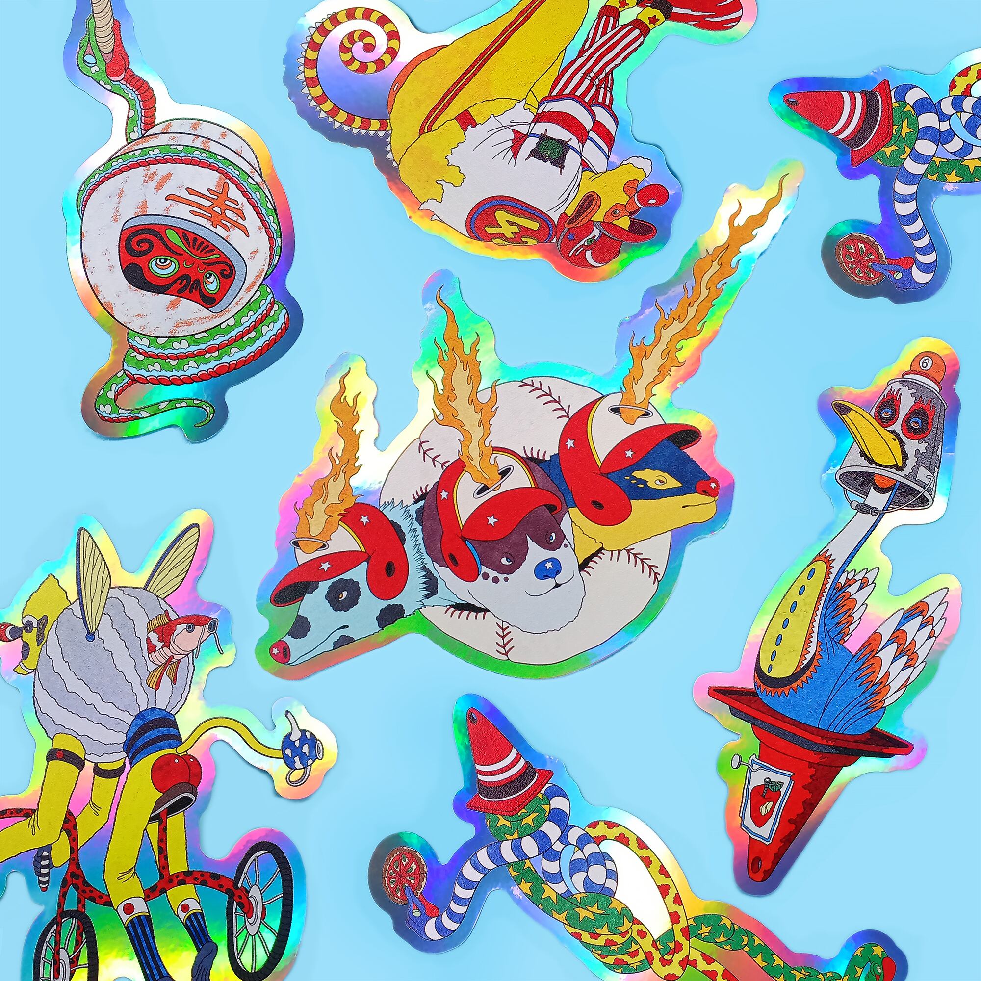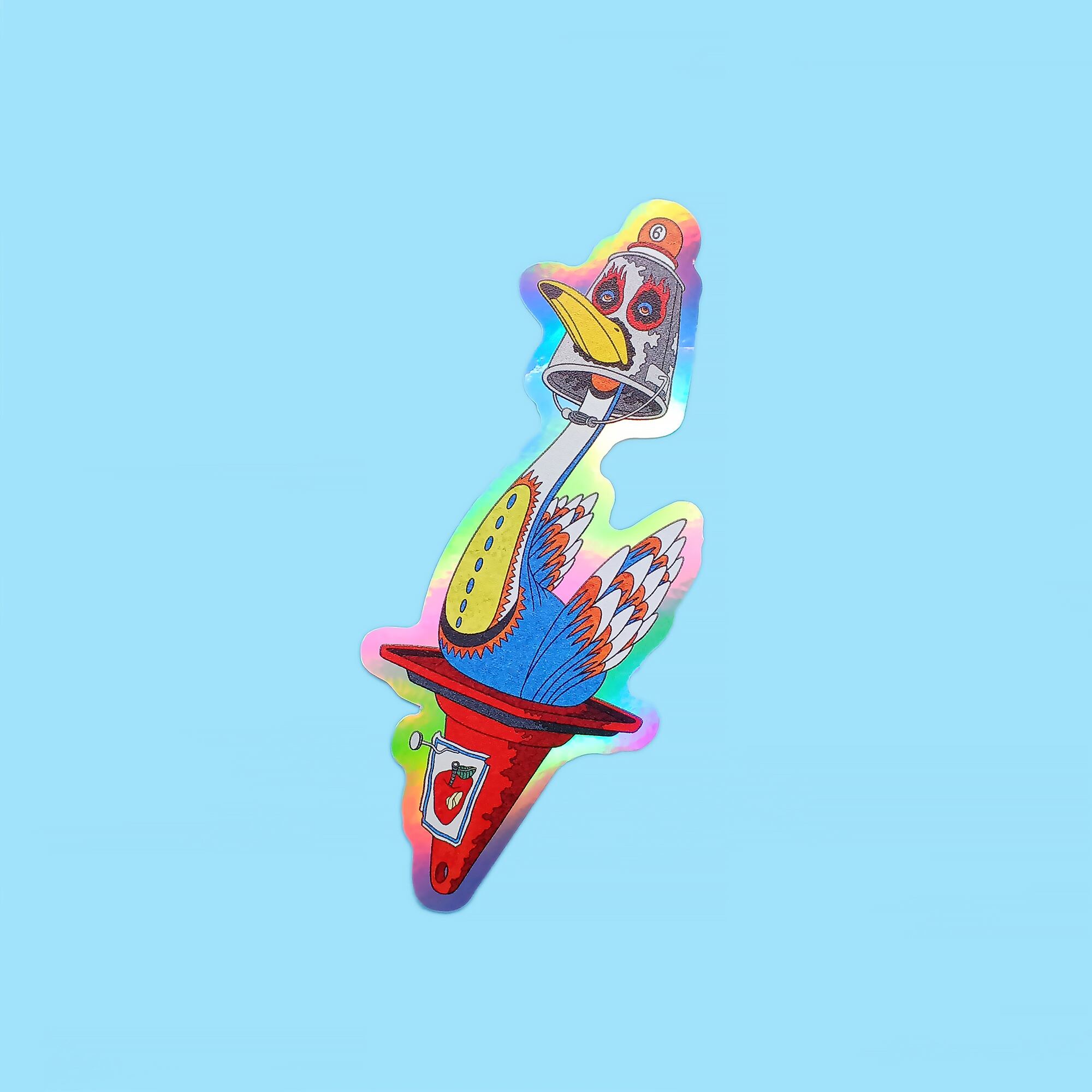 マスクを被った鳥が描かれたホログラムのステッカー サイズ 12.5cm × 5.5cm