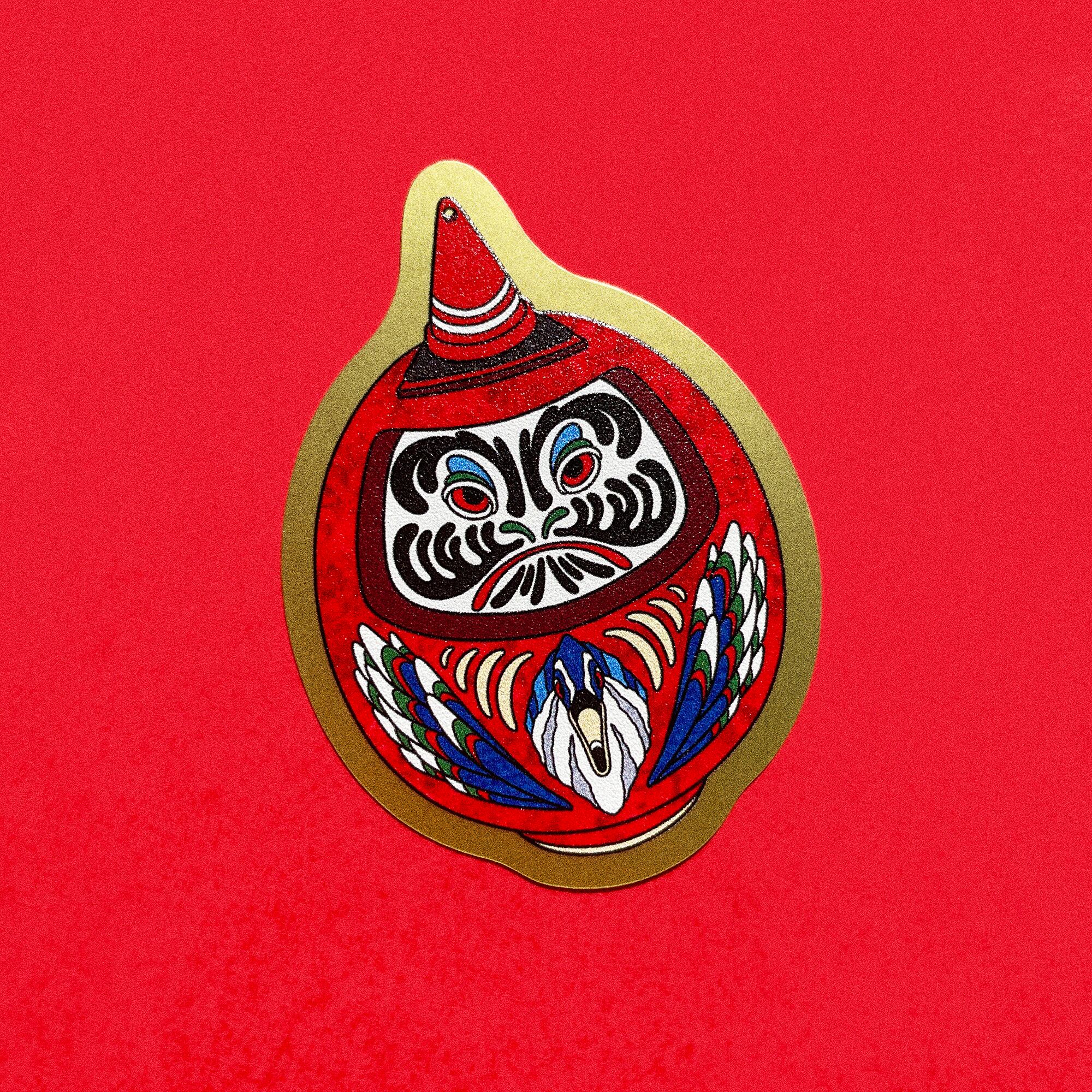艶消し金色のダルマステッカー。